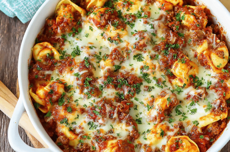 Comforting Beef and Cheese Tortellini Bake Dish