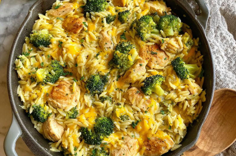 Creamy Broccoli Cheddar Chicken Orzo Delight