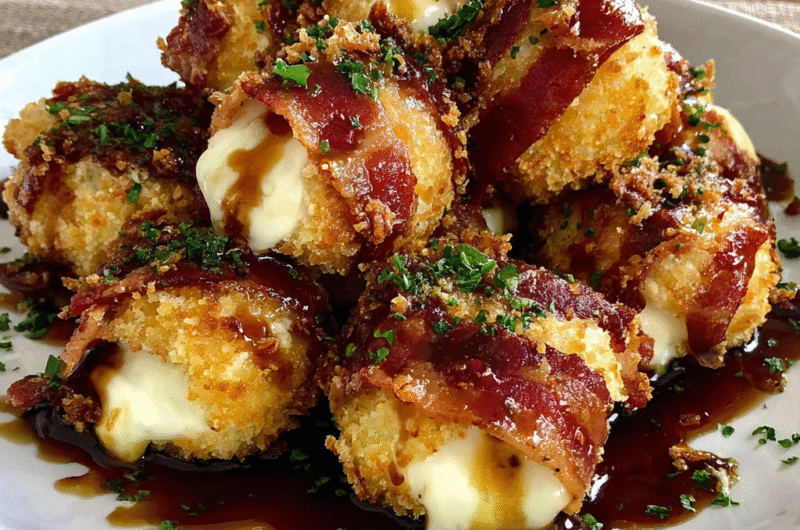 Crispy Bacon Mozzarella Poppers with Sweet Glaze