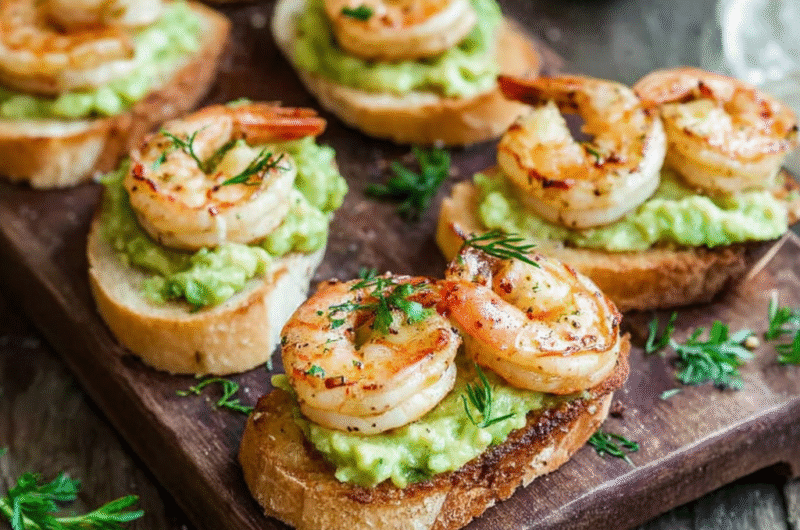 Delicious Garlic Shrimp Crostini with Avocado Bliss