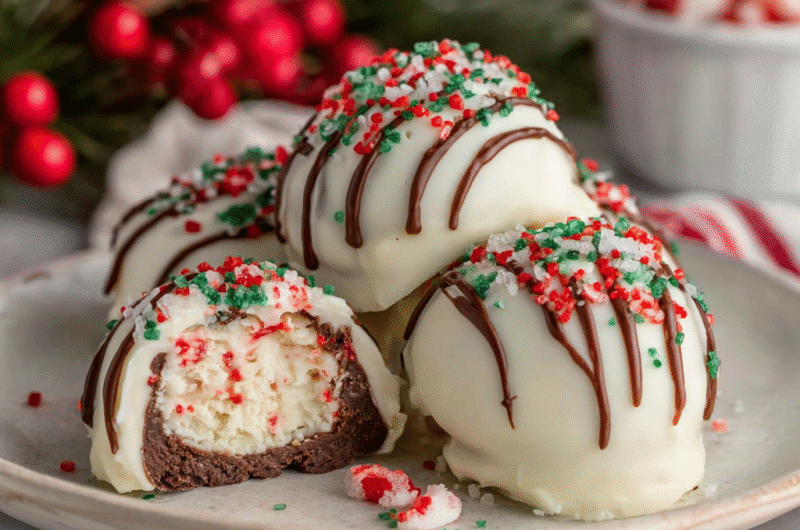 Sprinkles not only enhance the visual appeal of the truffles but also add a festive, crunchy texture that contrasts with the creamy filling.