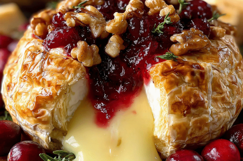 The creamy warmth of Brie enveloped in a luscious aromatic filling creates an unforgettable taste experience. Each bite offers a delightful crunch from walnuts and a burst of tartness from cranberries, making it a crowd favorite.