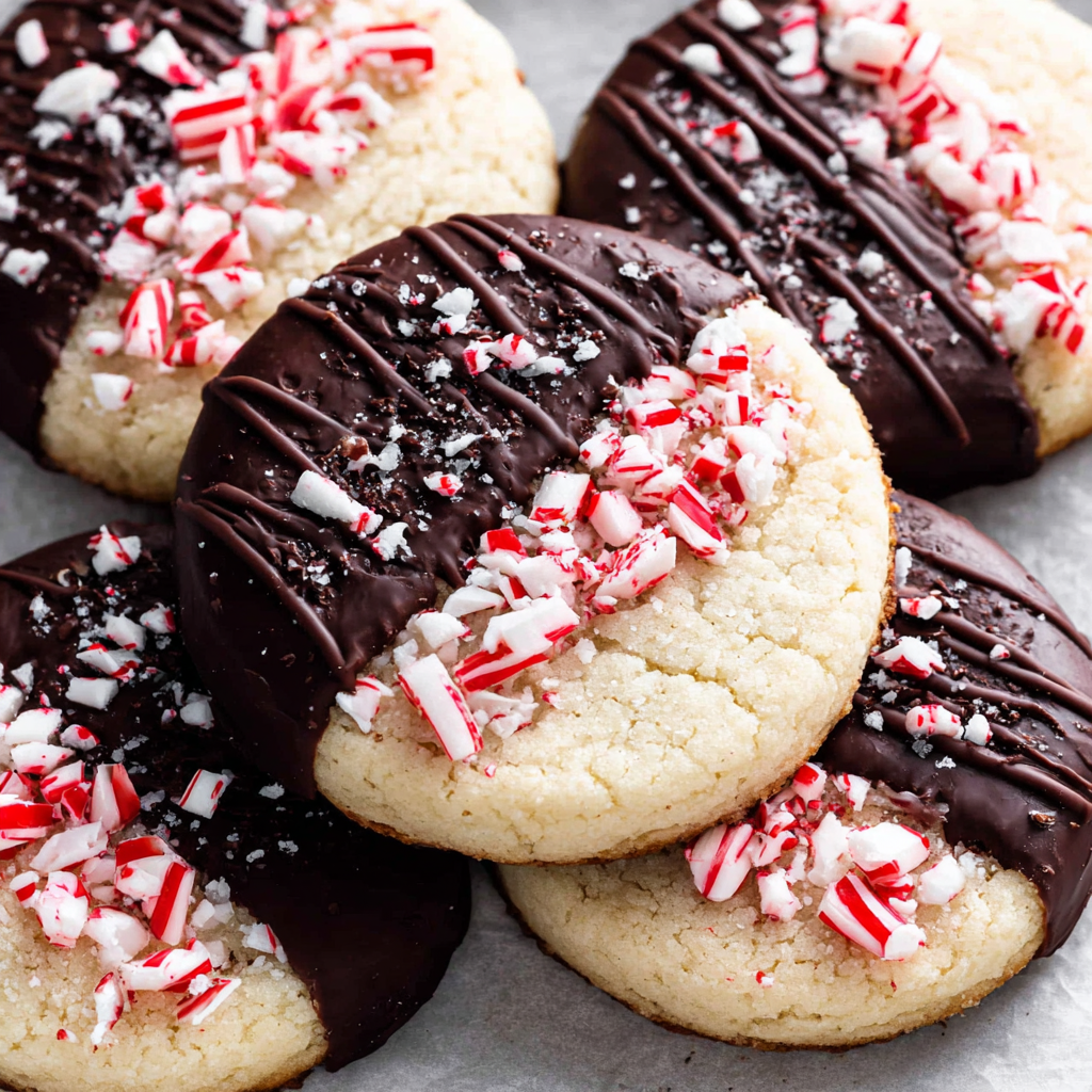 The beauty of these cookies lies not only in their taste but also in their festive appearance. The rich and creamy chocolate coating contrasts beautifully with the vibrant green and red of crushed candy canes, creating a visually appealing dessert. These cookies are fun to make and an excellent opportunity to involve children in the kitchen, turning ordinary baking into a cherished family tradition.