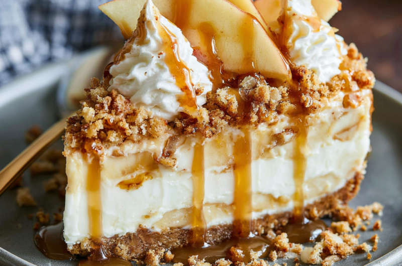 This recipe offers the ideal combination of flavors and textures, with a smooth, velvety cream cheese base contrasted by the tartness of fresh apples. Layered on a crunchy crust, this cheesecake is not just easy to prepare but also promises to impress at any gathering.