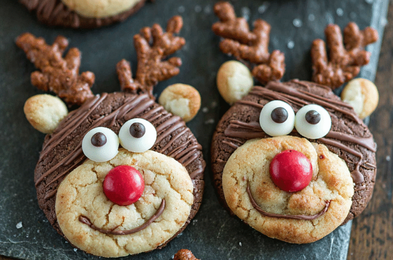 The icing is key for creating the reindeer faces—adding not only decoration but also a touch of sweetness that complements the cookie. - Candy eyes, mini pretzels, and red M&Ms