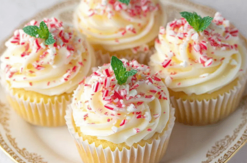 These white chocolate peppermint cupcakes are a delightful addition to any festive gathering, radiating warmth and cheer. With their luscious flavor and appealing decor, they are sure to impress everyone at the table.