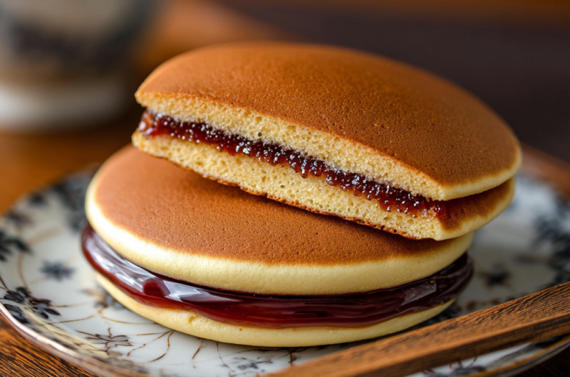 Fluffy pancakes filled with sweet red bean paste create a delightful flavor and texture combination, making Japanese dorayaki a charming treat for any occasion.