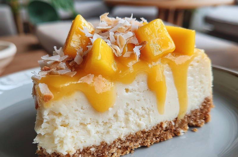 The coconut crust adds a unique, crunchy layer that complements the smooth mango filling beautifully. With its subtle sweetness and tropical notes, this cheesecake is a refreshing alternative to traditional desserts. Making this cheesecake is both fun and straightforward, allowing you to impress your family and friends with a stunning culinary creation.