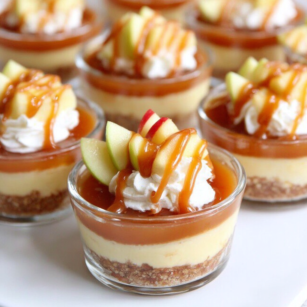 - Repeat the layering process until the cups are filled, finishing with a dollop of whipped cream and a drizzle of caramel on top.