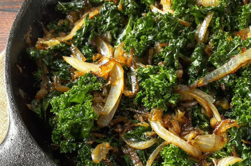 Sautéed Kale with Caramelized Onions for Home Cooks