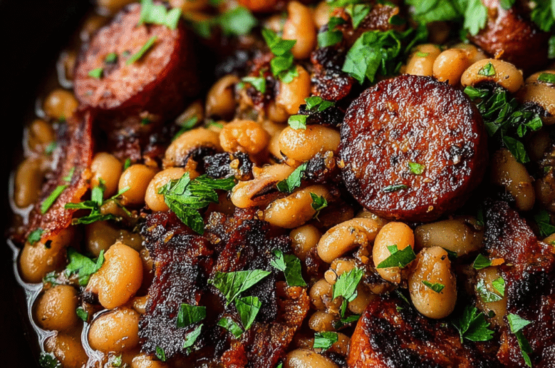 Black-eyed peas have been a staple in Southern kitchens for generations, often symbolizing good luck, especially during New Year’s Day feasts. This dish embraces that tradition, but it also evolves it by introducing hearty bacon and sausage. The combination creates a rich, savory experience that pays homage to cultural roots while being satisfying enough for any modern table.