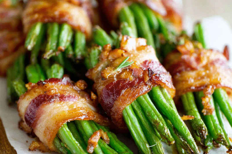 Step 7: Bake the bundles in the preheated oven for 20-25 minutes, or until the bacon is crispy.