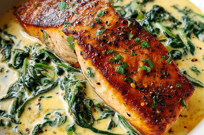 Savory Pan-Seared Salmon with Creamy Florentine Sauce