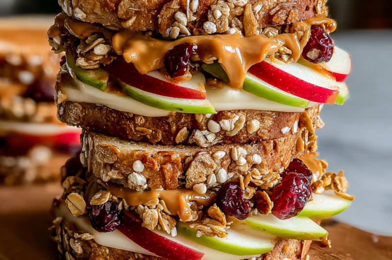 Peanut Butter Apple Sandwiches with Granola are a delightful treat that combines the creaminess of peanut butter, the crispness of fresh apples, and the crunch of granola. This snack or light meal is not only satisfying but incredibly easy to prepare, making it a favorite for adults and kids alike.